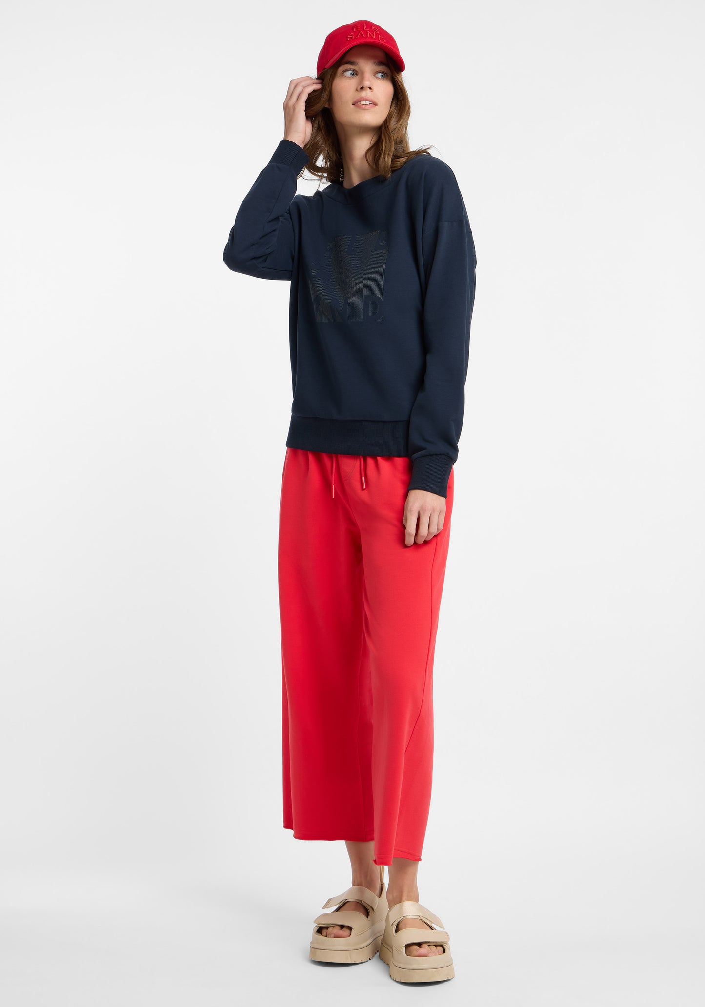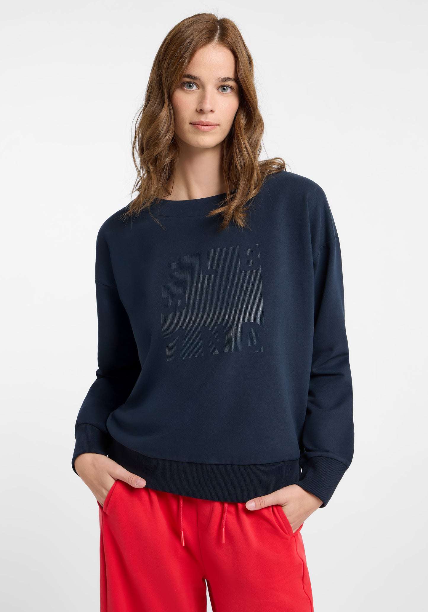Notre sweatshirt Elbsand Fea offre un confort décontracté avec une coupe ample et une matière sweat douce et élastique. L'intérieur est douillet grâce à un brossage qui assure un confort optimal. L'encolure bateau raffinée apporte une touche féminine, complétée par des bord-côtes élastiques aux manches et à l'ourlet pour un ajustement parfait. Un imprimé en caoutchouc élégant et légèrement brillant sur le devant ajoute des accents stylés. Ce sweatshirt est un best-seller au look tendance, idéal pour le quotidien, à la maison ou en déplacement. Composition : 95 % coton, 5 % élasthanne. Conseils d'entretien : lavage en machine à 30 degrés, cycle délicat, pas adapté au sèche-linge.