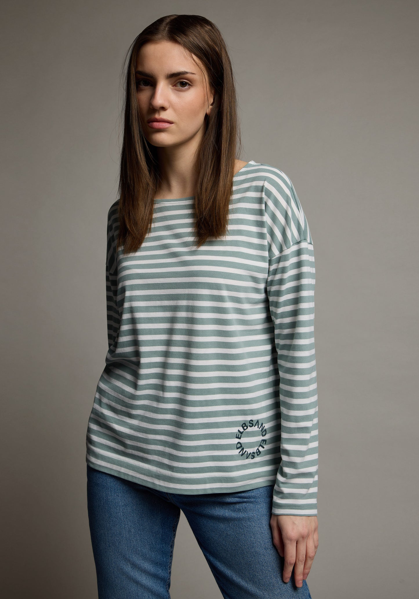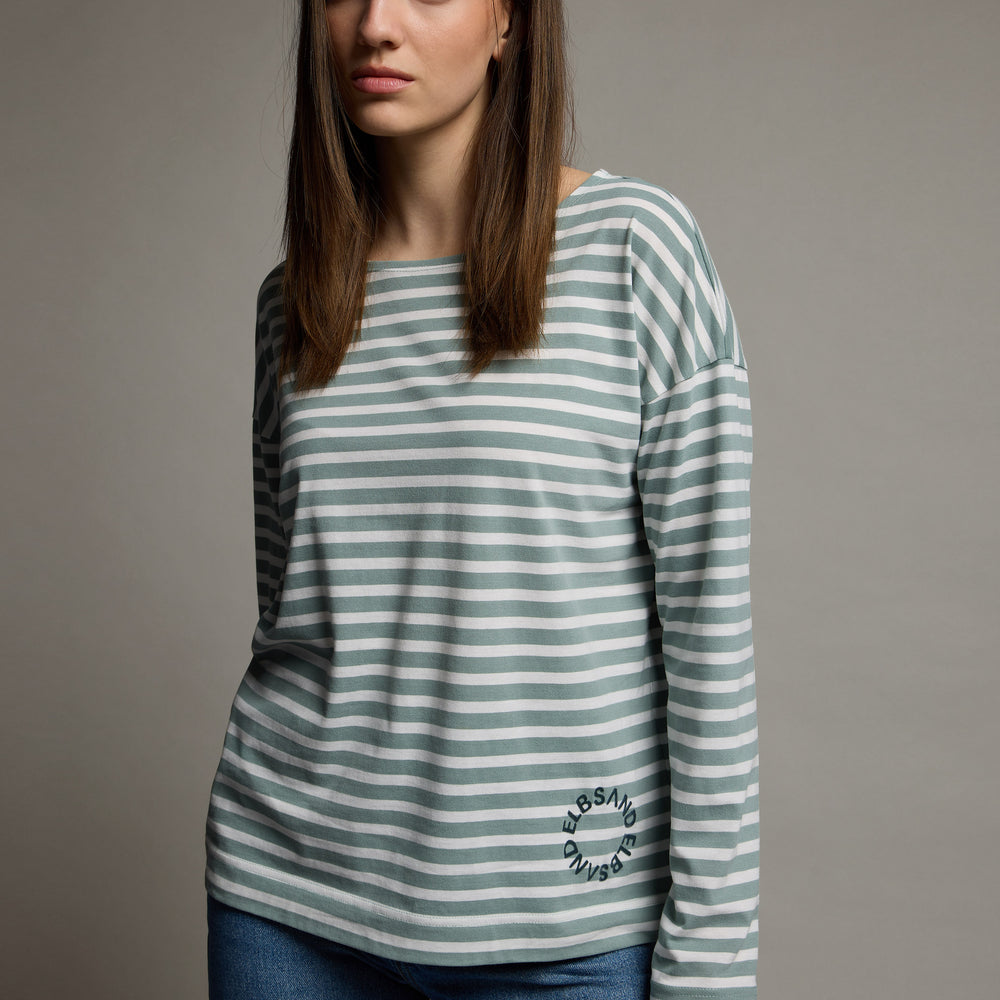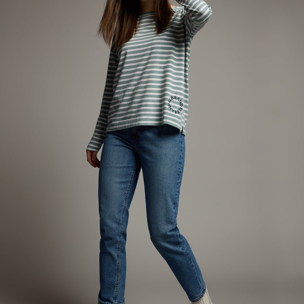 T-shirt manches longues Tooske coupe décontractée | Soft Sage Striped