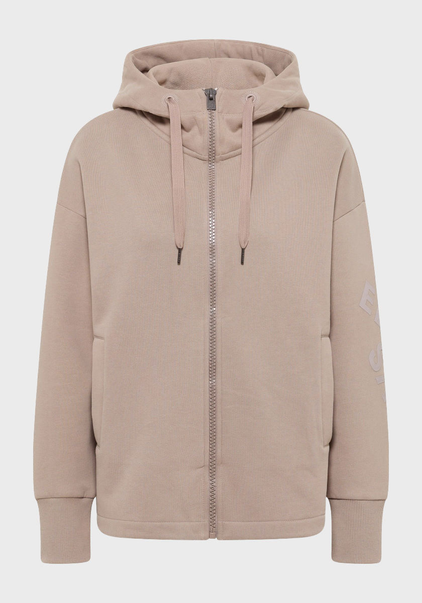Notre veste sweat Elbsand Mynthe est une veste sweat à la coupe ample, réalisée en coton doux et douillet avec une finition légèrement brossée. Elle dispose d'une capuche généreuse avec cordon de serrage, d'épaules légèrement tombantes, de poches pratiques à rabat et d'un imprimé en caoutchouc ton sur ton sur la manche. Parfaite pour des looks décontractés lors des journées froides, elle offre un confort maximal avec un style moderne et sportif. Idéale pour les femmes qui aiment un style urbain et décontracté, elle s'associe facilement avec un jean ou un pantalon de jogging.